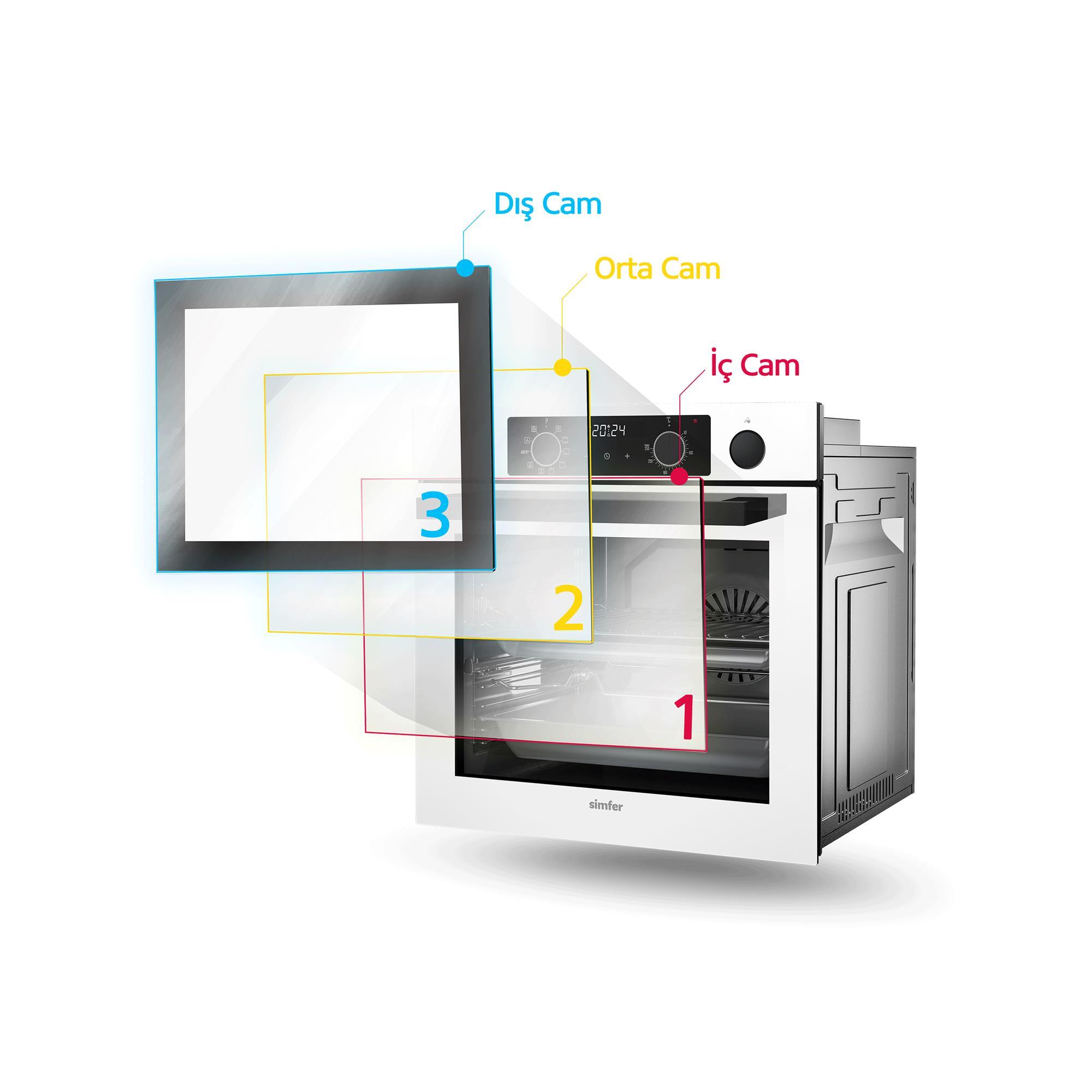 SİMFER 8222 9 Fonksiyon QS Gri Cam Ankastre Fırın Power Turbo Pop-up